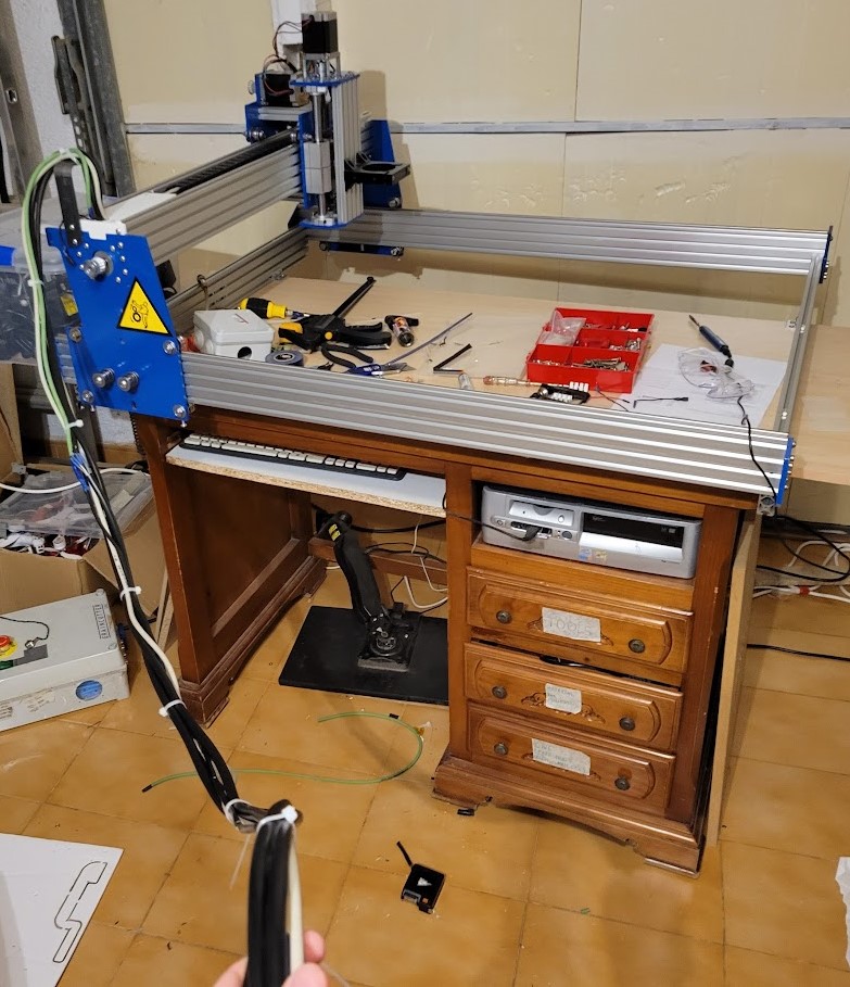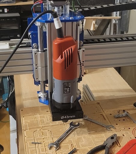 After some testing, I realized my working area was only 40×30 cm – too small for what I had in mind. On top of that, the blue Chinese “Makita” clone spindle had three major flaws: