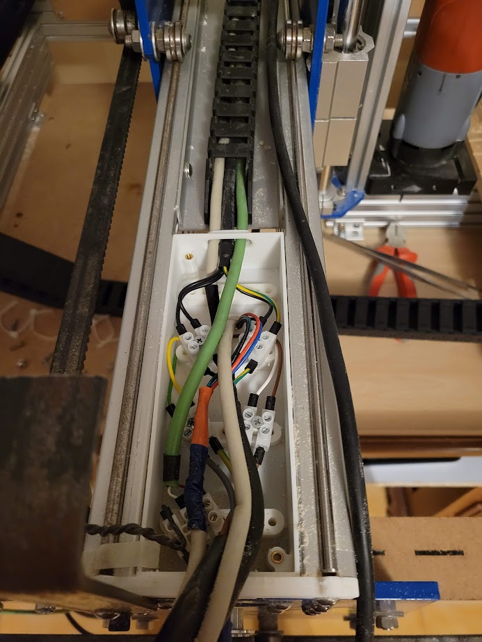 I added cable guides, installed connectors, mounted the electrical box on the table. At last, the machine was ready to tackle big wooden slabs.