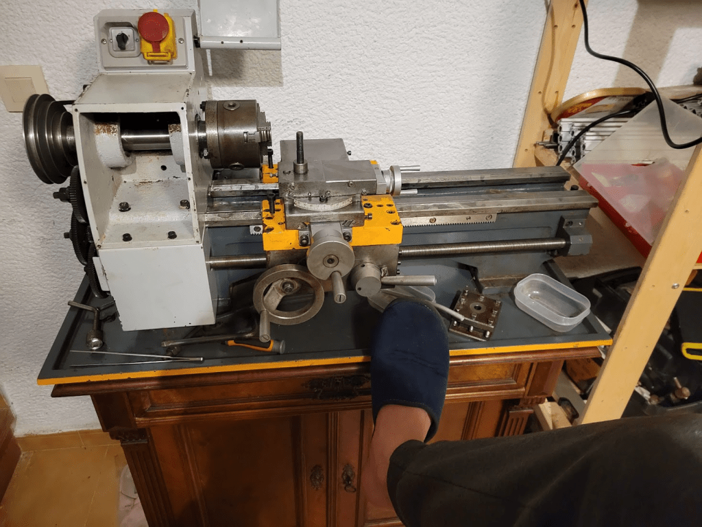 I had wanted a lathe for a long time. Problem? The decent ones start from 2000€ and even then they sometimes need post factory “refinement”. So I couldn’t believe my luck when I found a this hunk of junk on Wallapop (local Craigslist) for 1800€. I laughed and offered 400€. The dude accepted. I bought the lathe for 350€ and gave his kid my old PC.